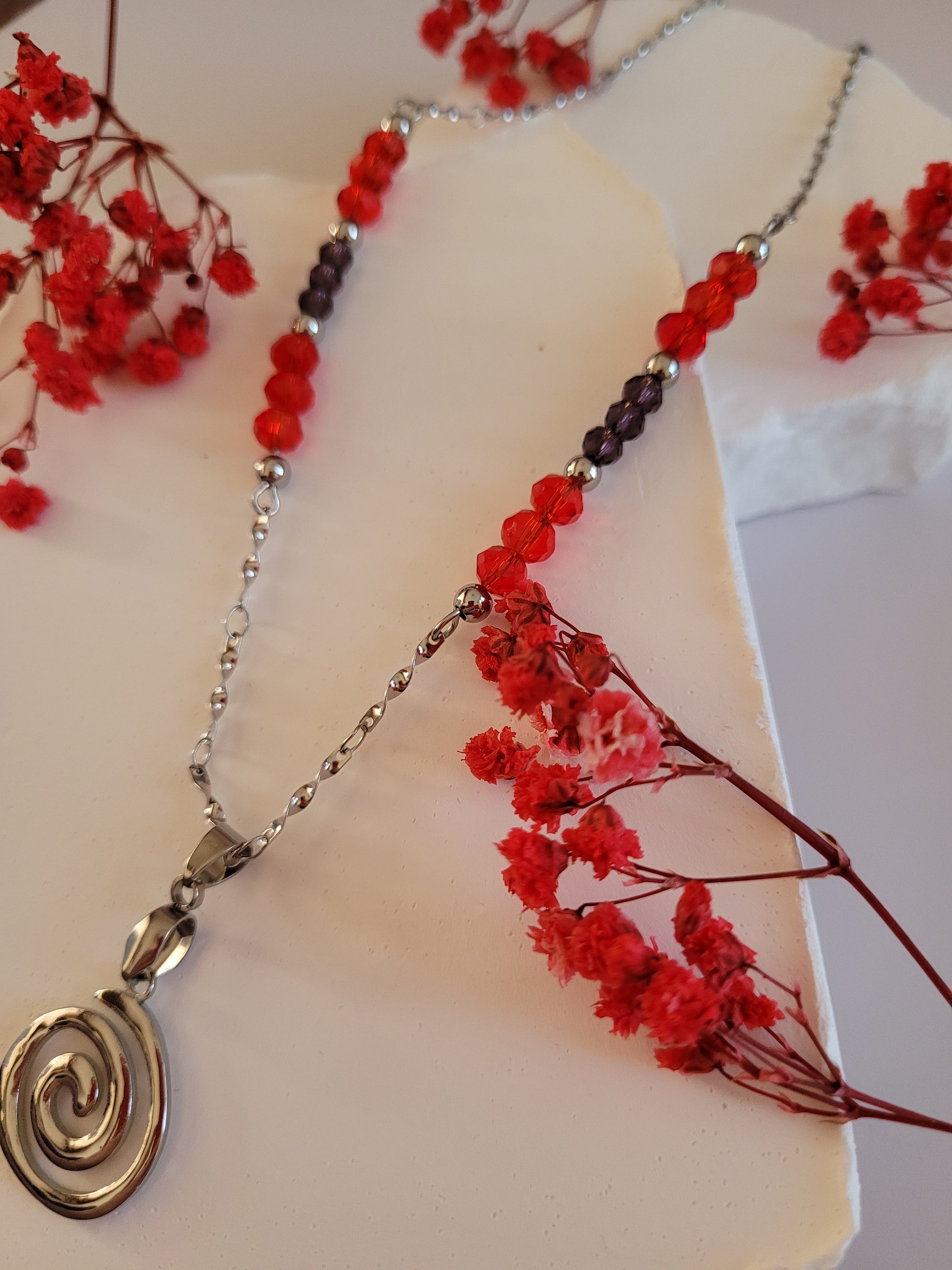 Découvrez ce collier élégant orné de perles facetées rouges et violettes, un accessoire parfait pour rehausser n'importe quelle tenue.