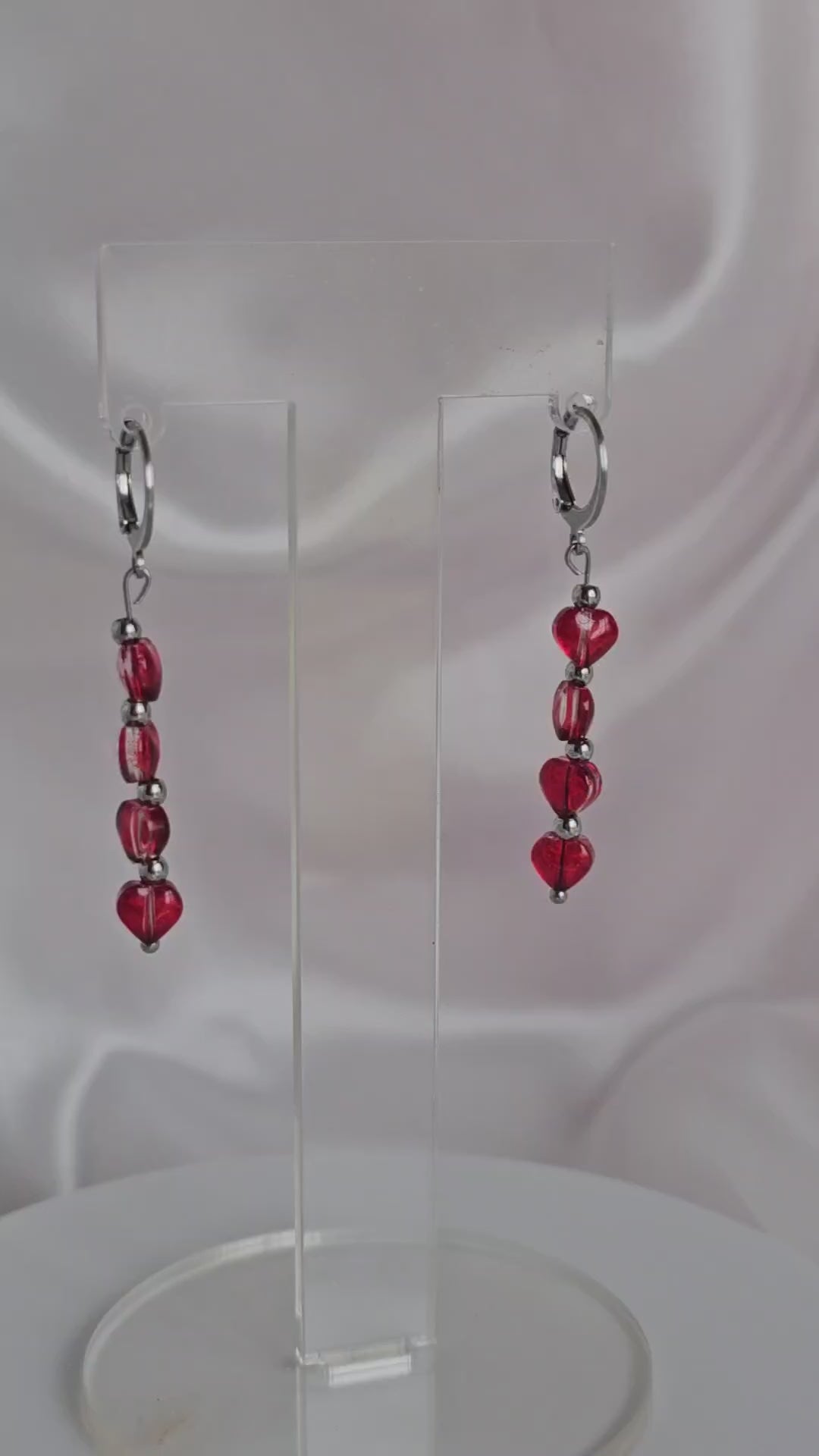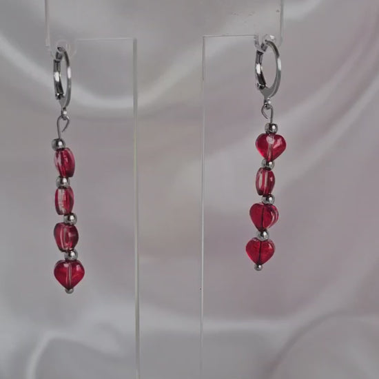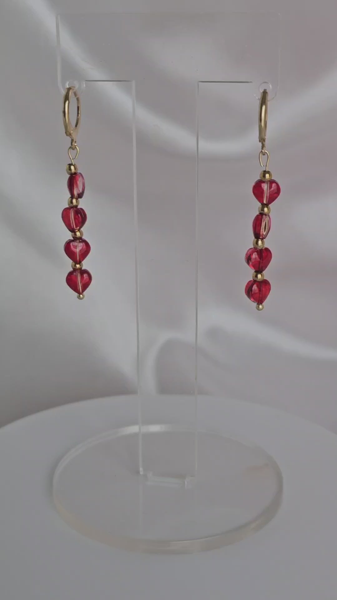 Ces boucles d’oreilles pendantes, ornées de cœurs rouges lumineux, apportent instantanément une touche de romantisme et de féminité. Leur éclat capte la lumière… et tous les regards.