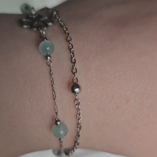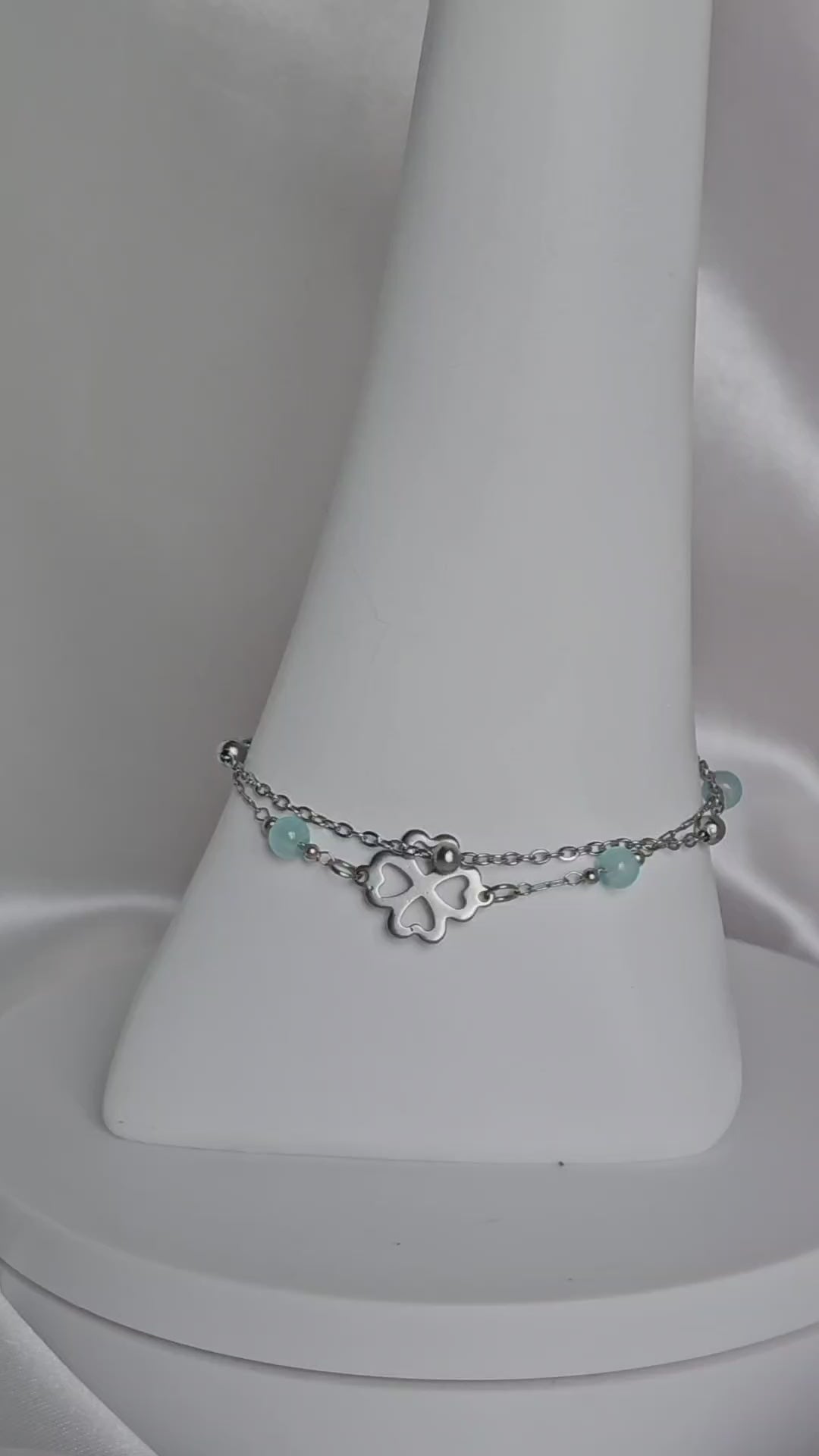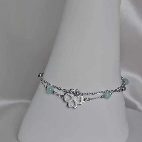 ✨ Bracelet Double Chaîne Trèfle Cœurs – Harmonie & énergie positive 💙