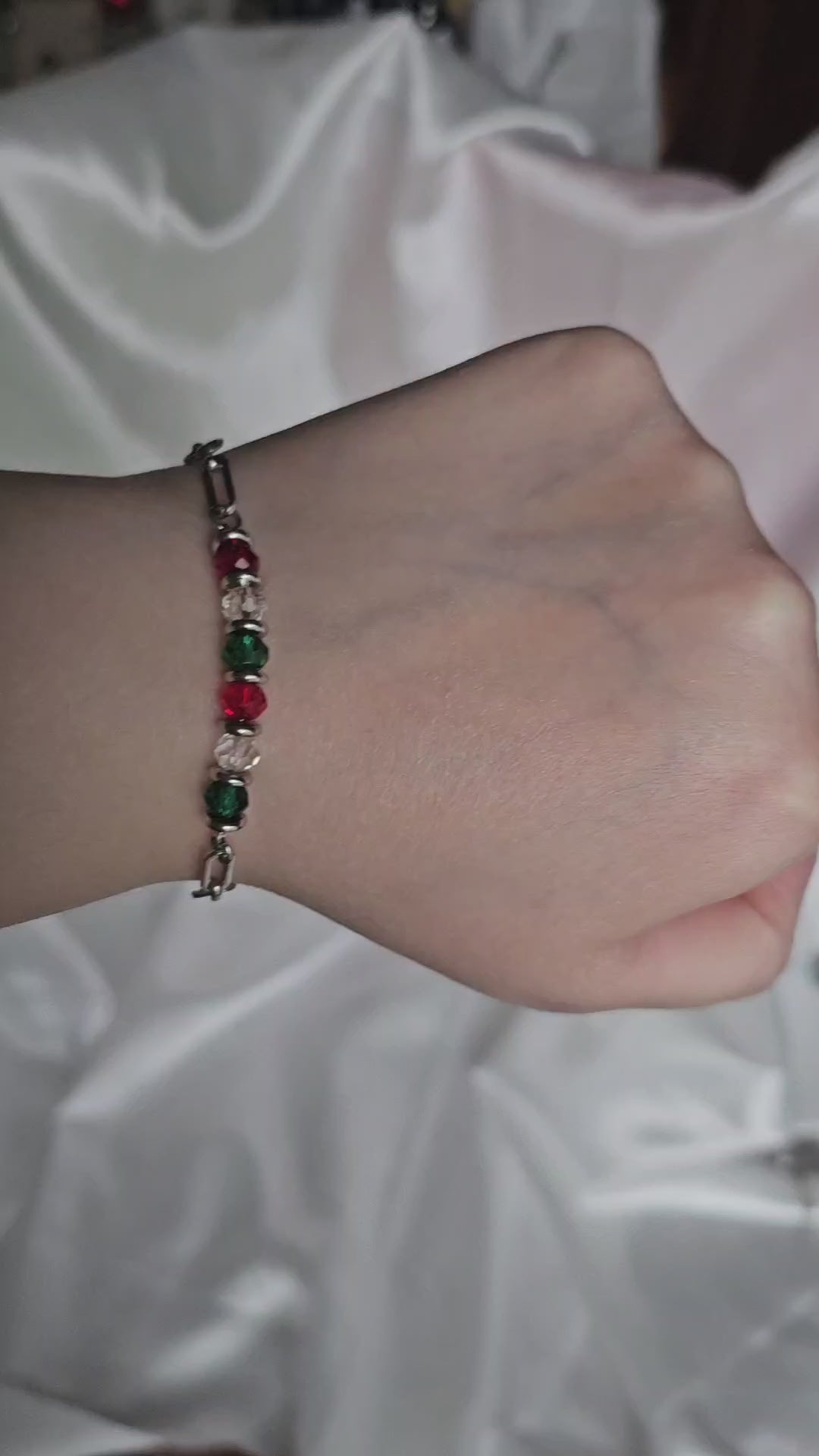 ✨ Bracelet Perlé Rouge, Vert & Transparent – Éclat & élégance 💫